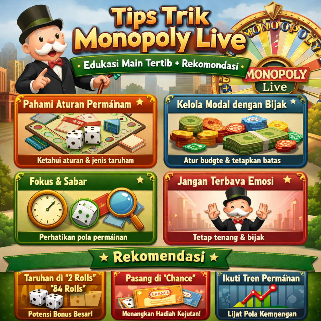 Tips trik Monopoly Live yang paling berguna biasanya bukan soal “pola gacor”, tapi cara mengatur taruhan supaya kamu tidak terpancing naik turun tanpa kontrol. Mulai dari edukasi modal: bagi saldo menjadi beberapa “unit” kecil untuk satu sesi. Cara ini membantu kamu melihat taruhan sebagai keputusan terukur, bukan emosi sesaat. Praktiknya sederhana: tentukan batas rugi (stop-loss) dan batas menang (take-profit) versi kamu sendiri, lalu patuhi. Stop-loss itu bukan kutukan, justru rem keselamatan. Tanpa stop-loss, pemain cenderung menambah taruhan saat kalah, berharap satu putaran bisa menutup semuanya ini yang sering membuat permainan jadi tidak tertib. Sementara take-profit menjaga kamu dari jebakan “udah menang, tapi pengin lebih” yang berujung balik turun.